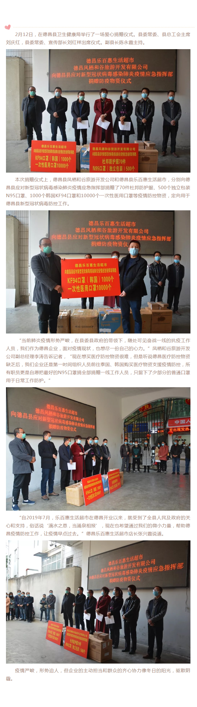 鳳棲和谷愛心捐贈助力德昌防控疫情